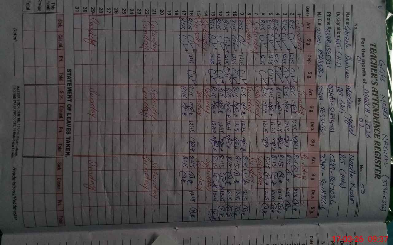 | Name: Gh**** Sh**** Designation: (School Headmaster's/Headmistress's) PST Phone/Cell Number: 03**** |