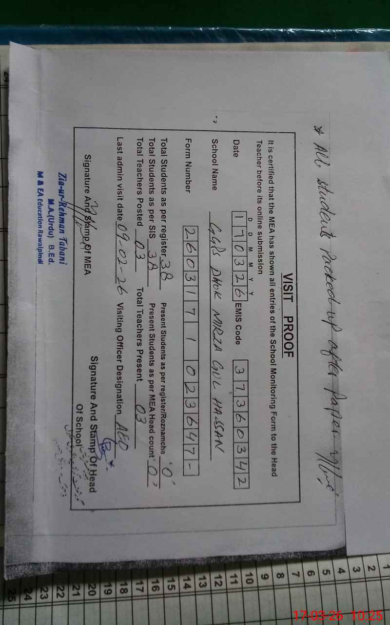 | EMIS Code: 37360342 | Name of School: GGPS DHOKE MIRZA GUL HASSAN | |||