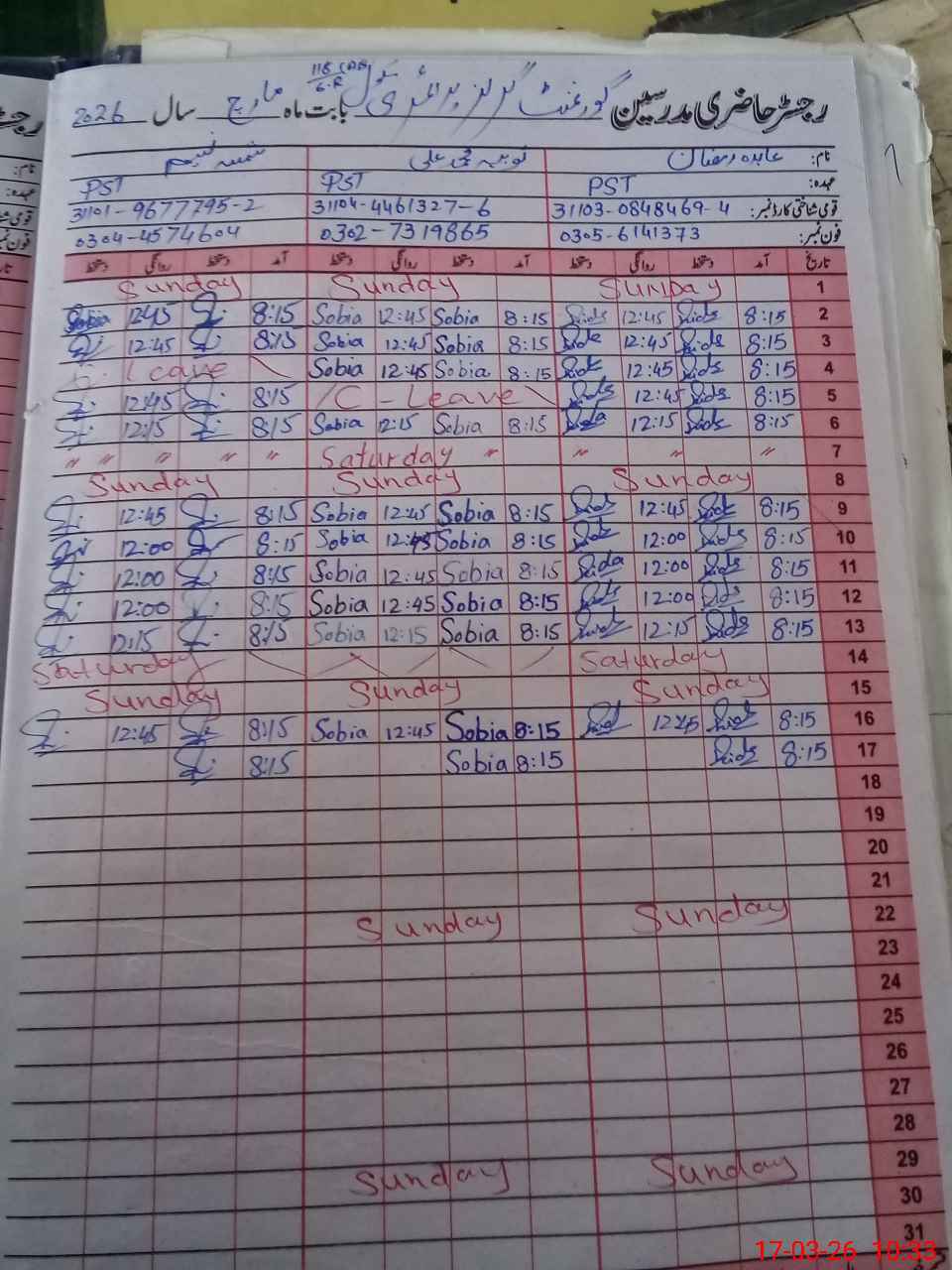 | Name: Na**** Pa**** Designation: (School Headmaster's/Headmistress's) PST Phone/Cell Number: 03**** |