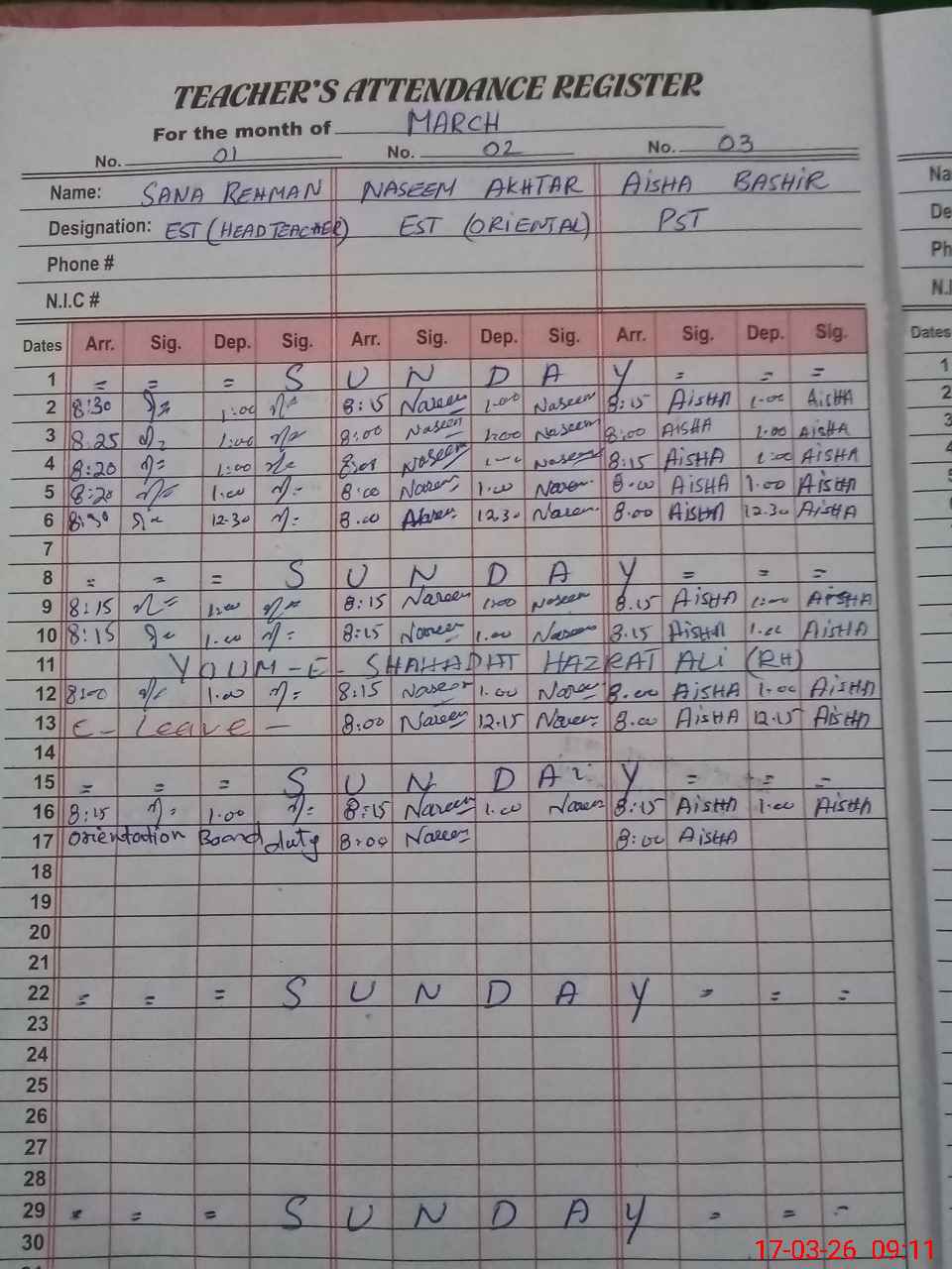 | Remarks (Use Separate Page if Required): Roobi Rashid Bulavi long absent since 20 February 2026 ECE Nursary and Three class Exam off today | |||||