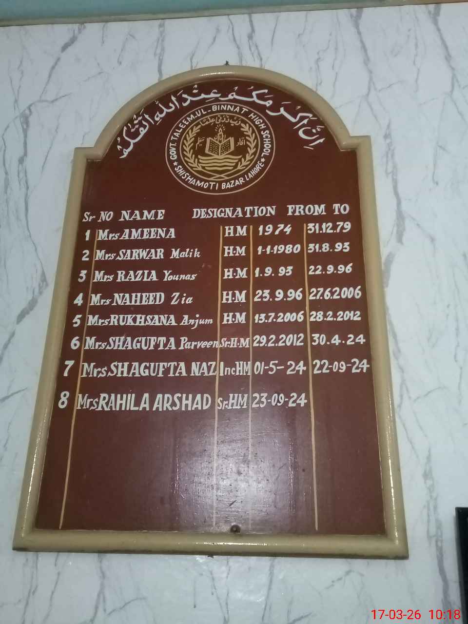 | EMIS Code: 35220065 | Name of School: GGHS TALIM UL BINAT SHESHA MOTI BAZAR LAHORE | |||