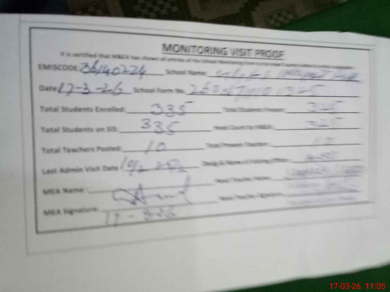 | Certified that this School was Inspected by the Undersigned MEA/DMO Today and the Information Stated Above is as Per Record. | |||||