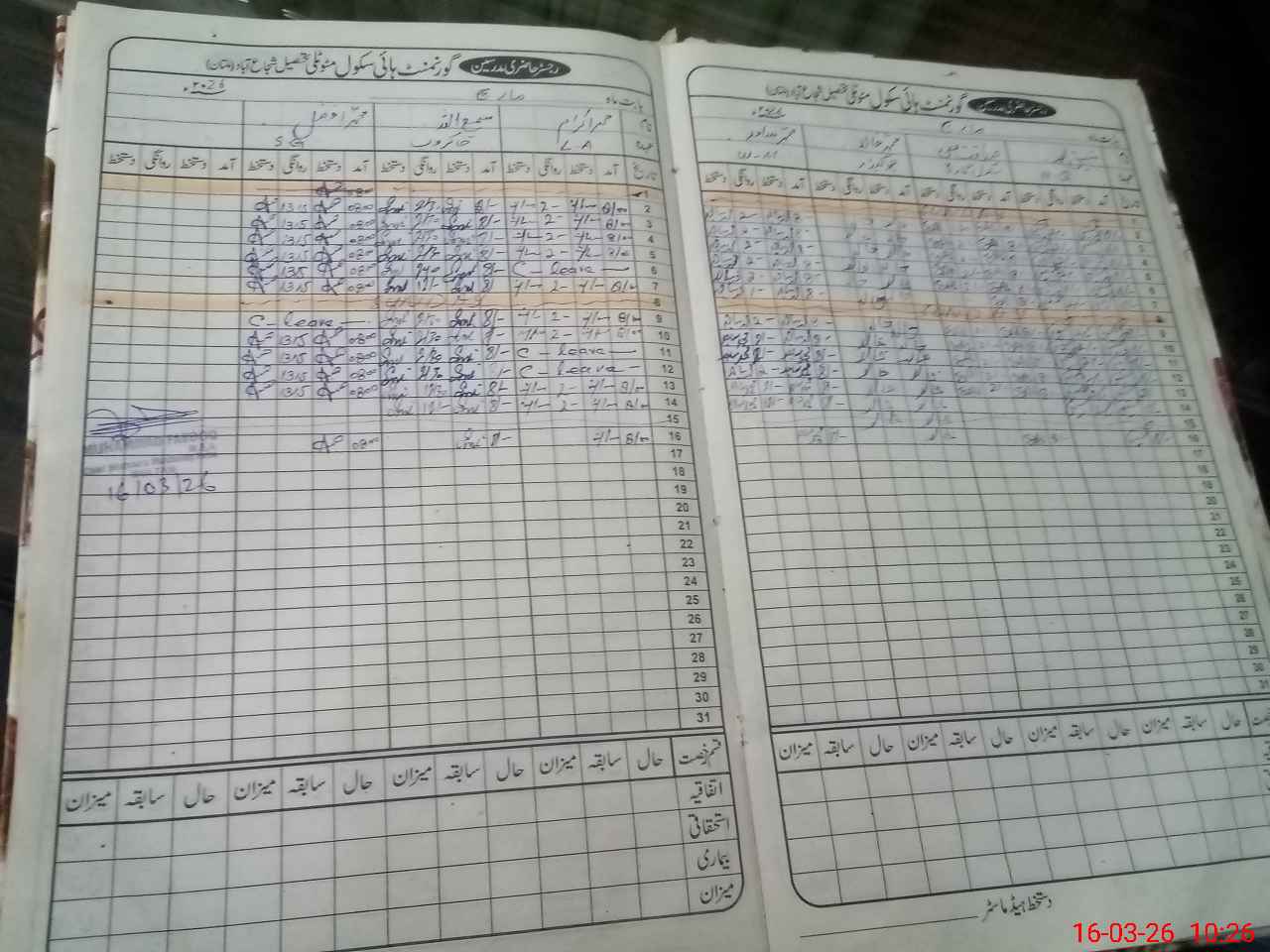 | Leave | Duty | Absent | Maternity | Medical | Ex- Pak |