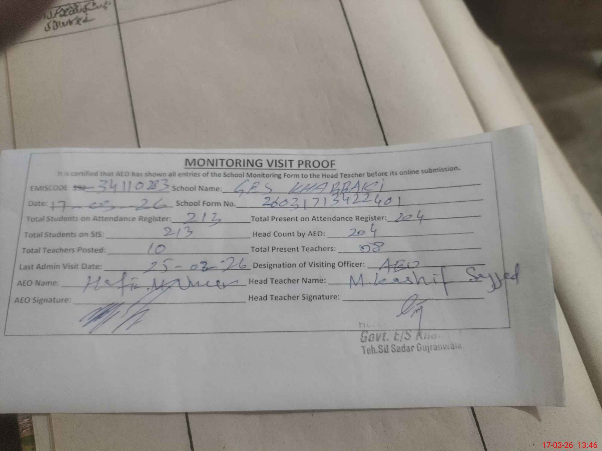| Certified that this School was Inspected by the Undersigned MEA/DMO Today and the Information Stated Above is as Per Record. | |||||