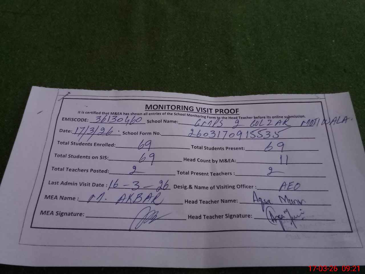 | EMIS Code: 36130460 | Name of School: GMPS 2 GULZAR MOTI WALA P/O 1 GULZAR | |||