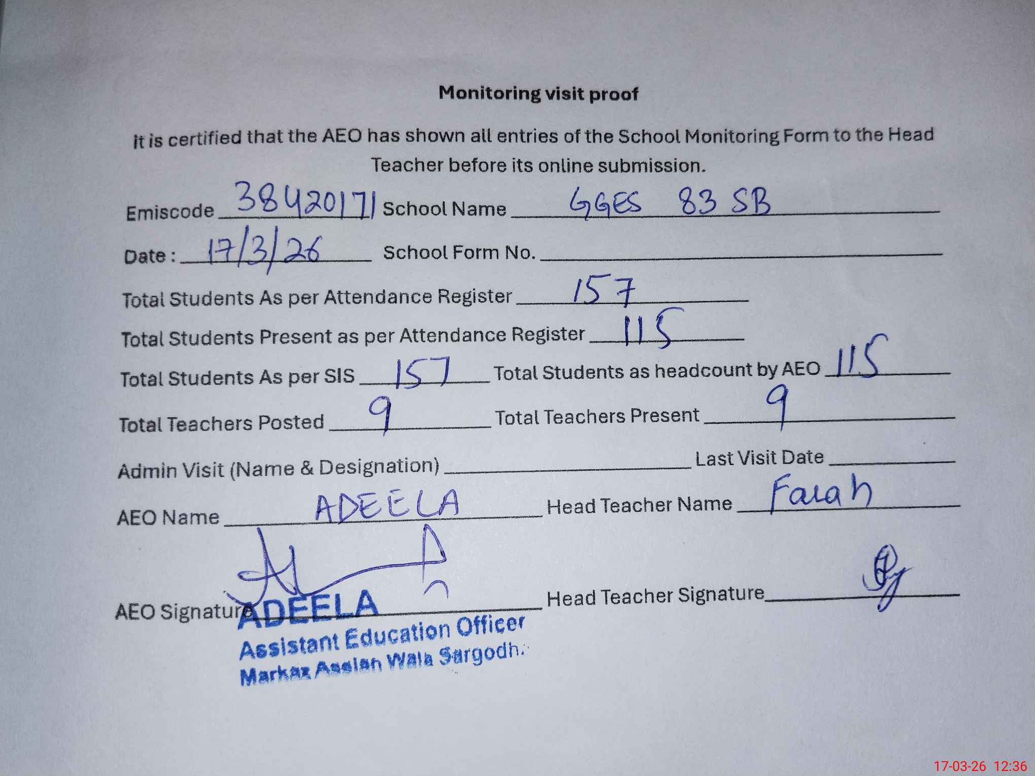 | EMIS Code: 38420171 | Name of School: GGES CHAK NO.83 SB | |||