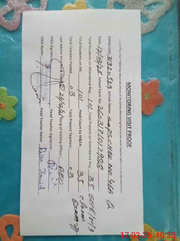 | EMIS Code: 31320529 | Name of School: GGPS CHAK NO.46/A QADEEM | |||