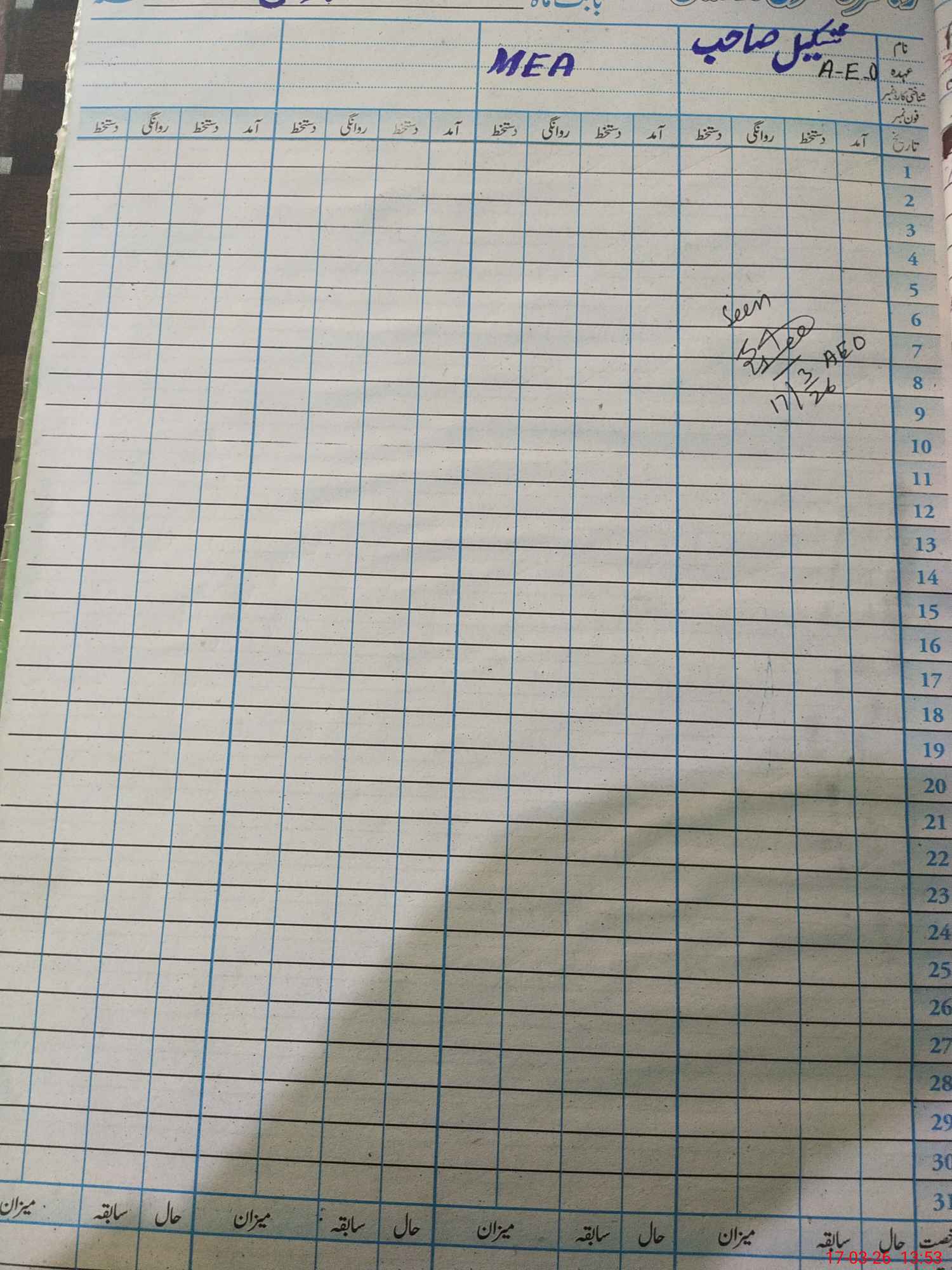 | Name of AEO: | AEO Contact No.: | MEA Phone#: 03**** | ||