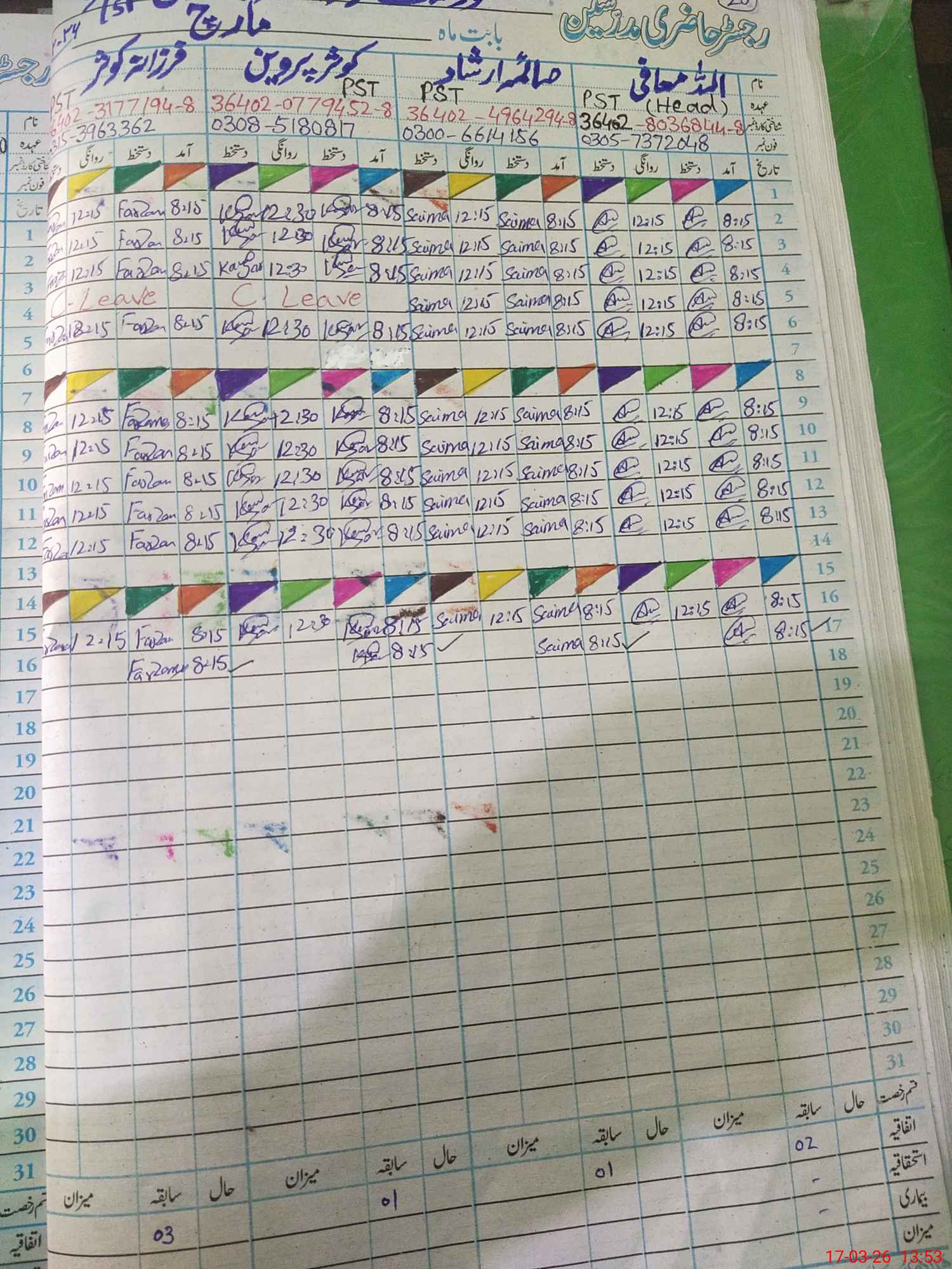 | Leave | Duty | Absent | Maternity | Medical | Ex- Pak |