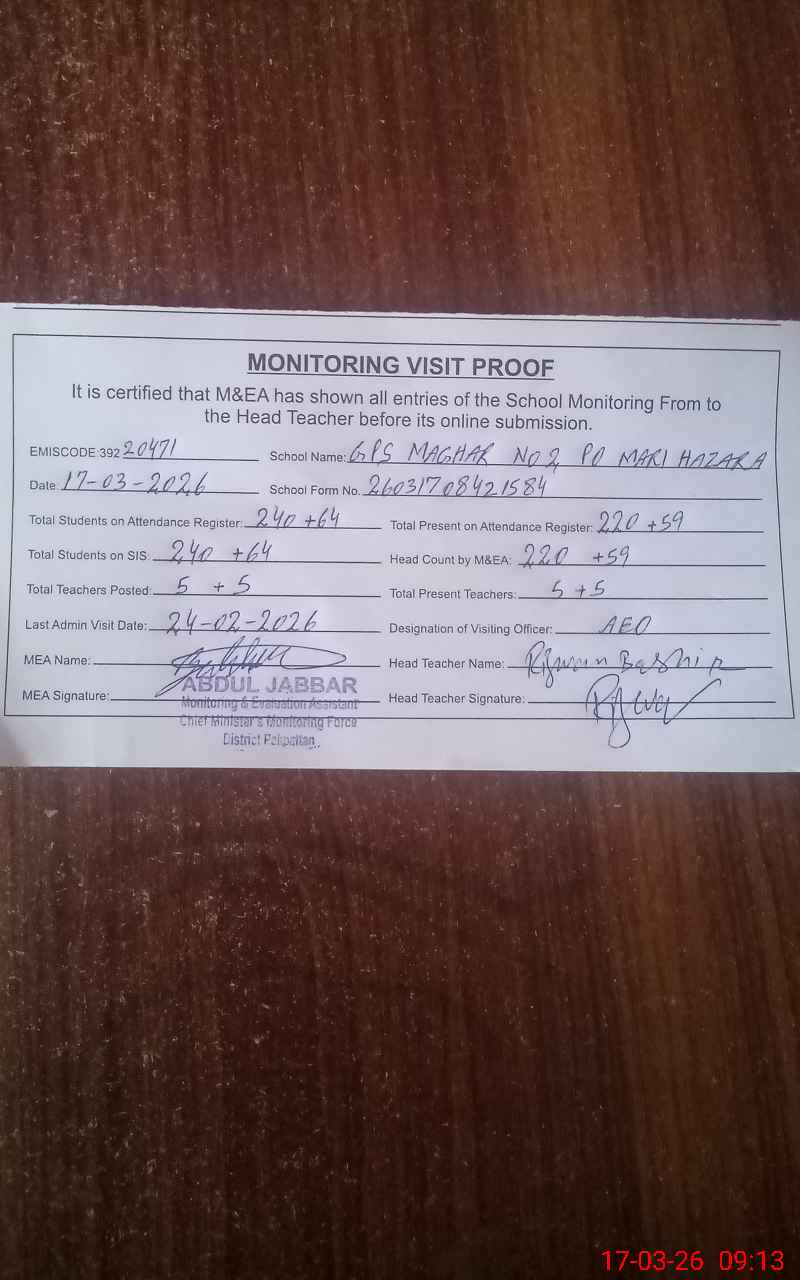 | EMIS Code: 39220471 | Name of School: GPS MAGHAR NO. 2 P/O MARI HAZARA | |||