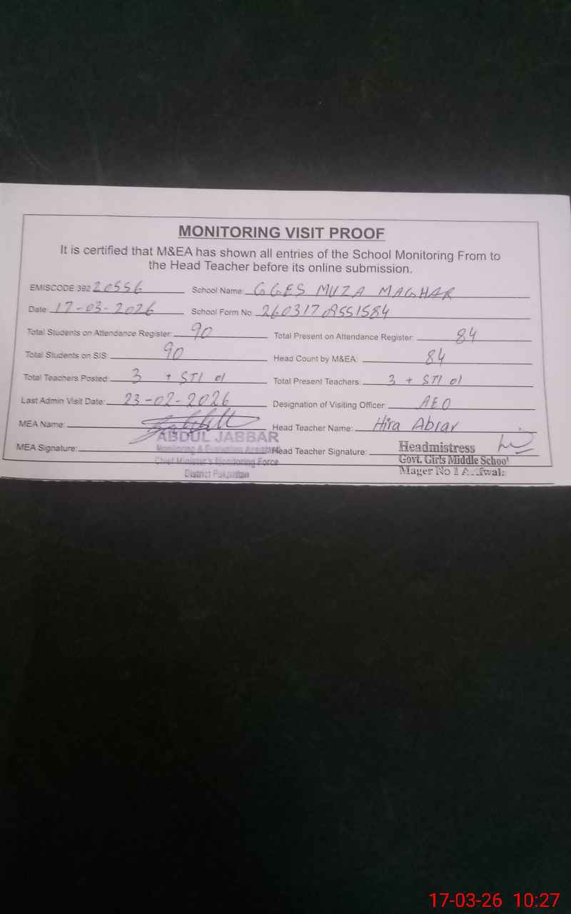 | EMIS Code: 39220556 | Name of School: GGES MAUZA MAGHAR | |||