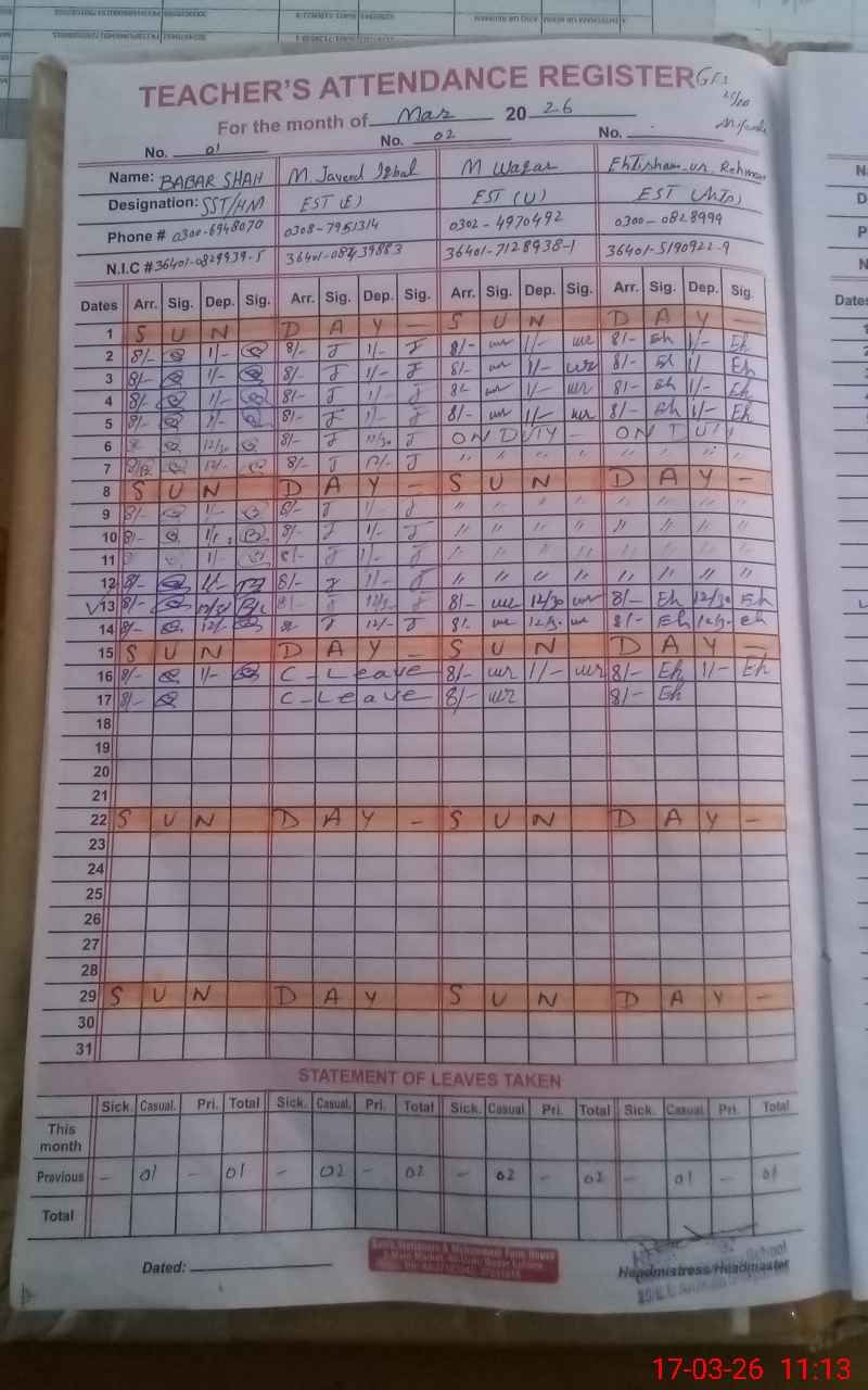 | Name: SY**** MU**** BA**** SH**** Designation: (School Headmaster's/Headmistress's) SST (TECHNICAL) Phone/Cell Number: 03**** |