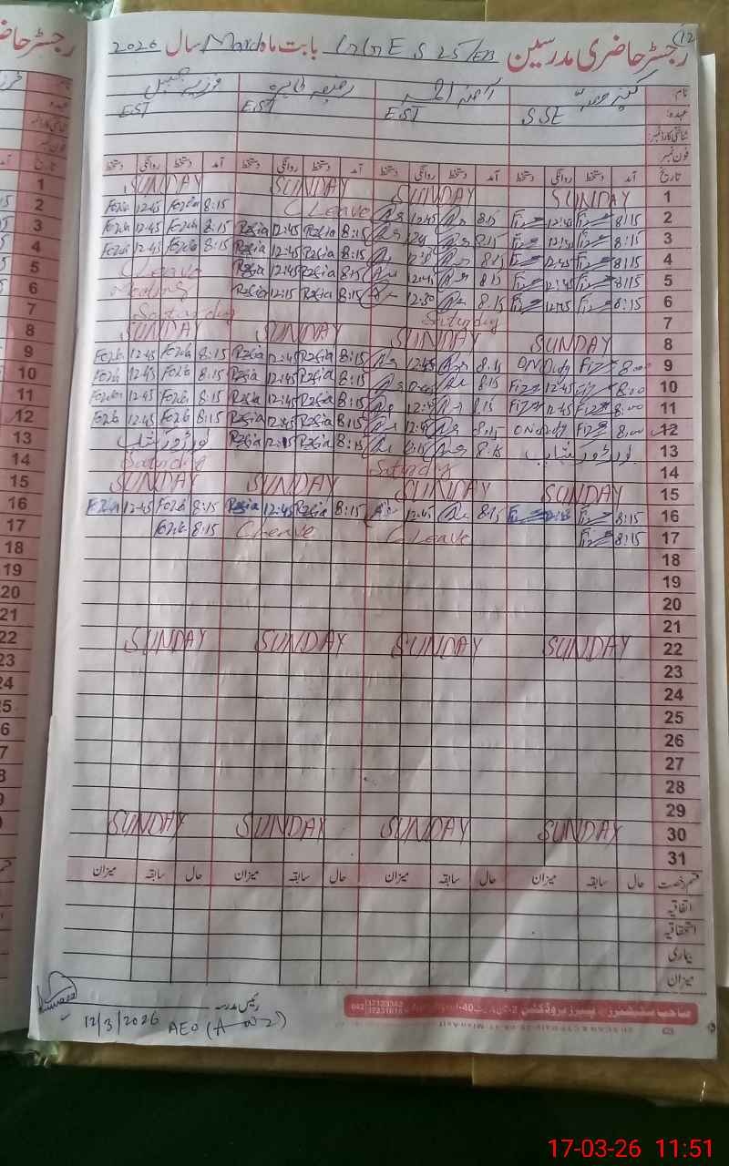 | Name: KA**** FI**** Designation: (School Headmaster's/Headmistress's) SSE (GENERAL) Phone/Cell Number: 03**** |