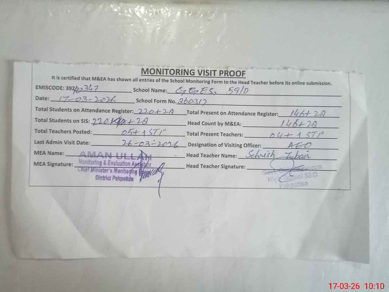 | EMIS Code: 39210347 | Name of School: GGES CHAK NO. 59 D | |||