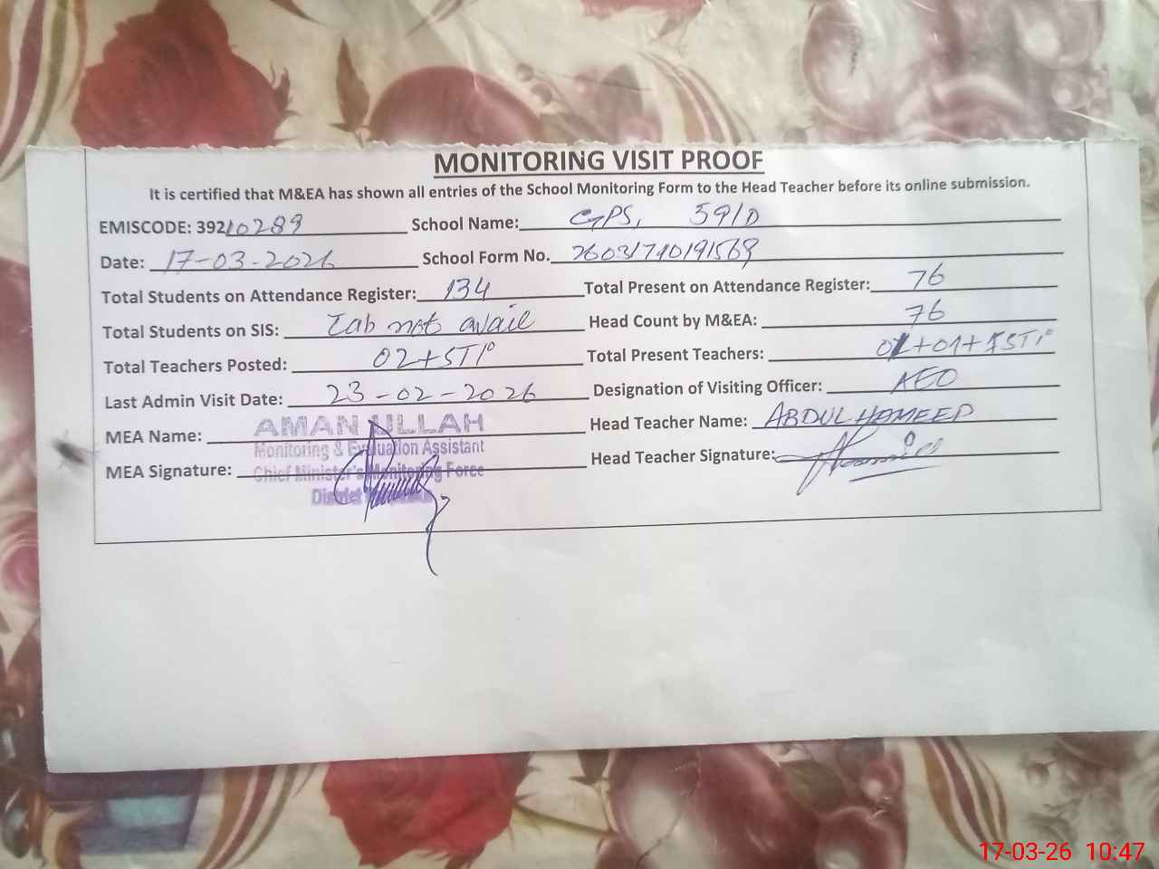 | EMIS Code: 39210289 | Name of School: GPS 59/D | |||