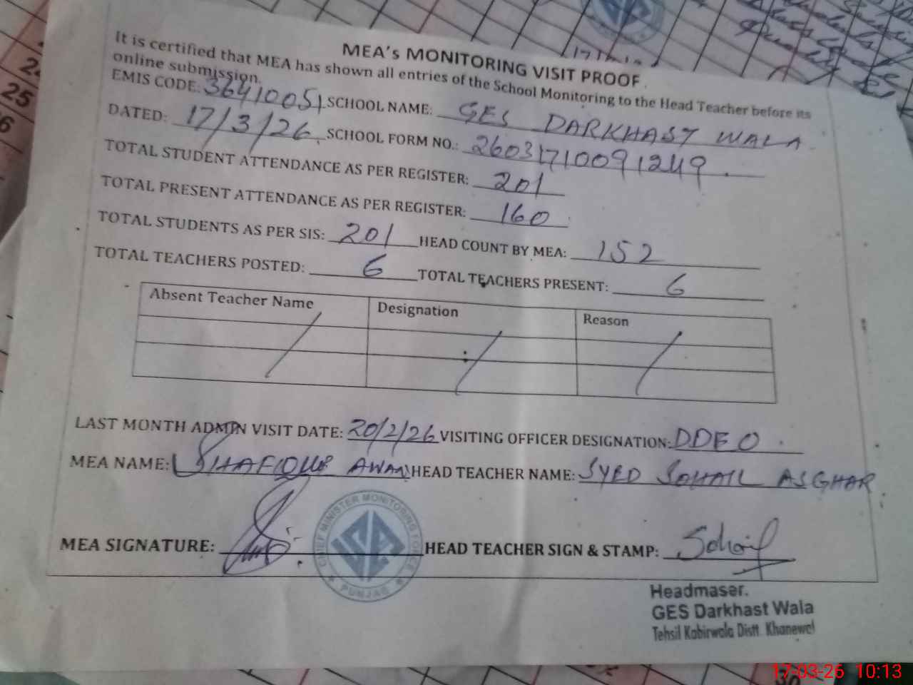 | EMIS Code: 36410051 | Name of School: GES DARKHAST WALA, KABIRWALA | |||