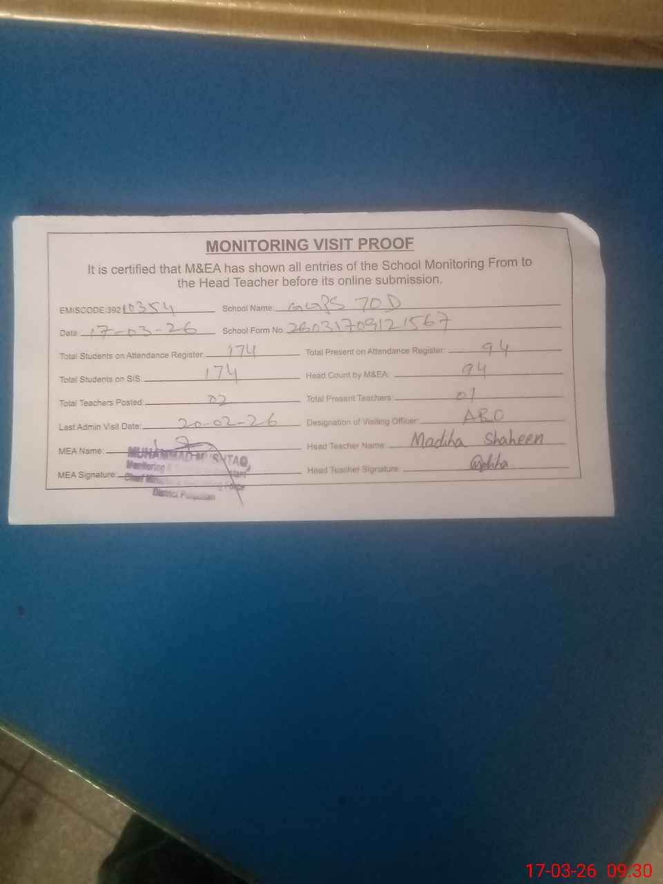 | EMIS Code: 39210354 | Name of School: GGPS 70 D | |||