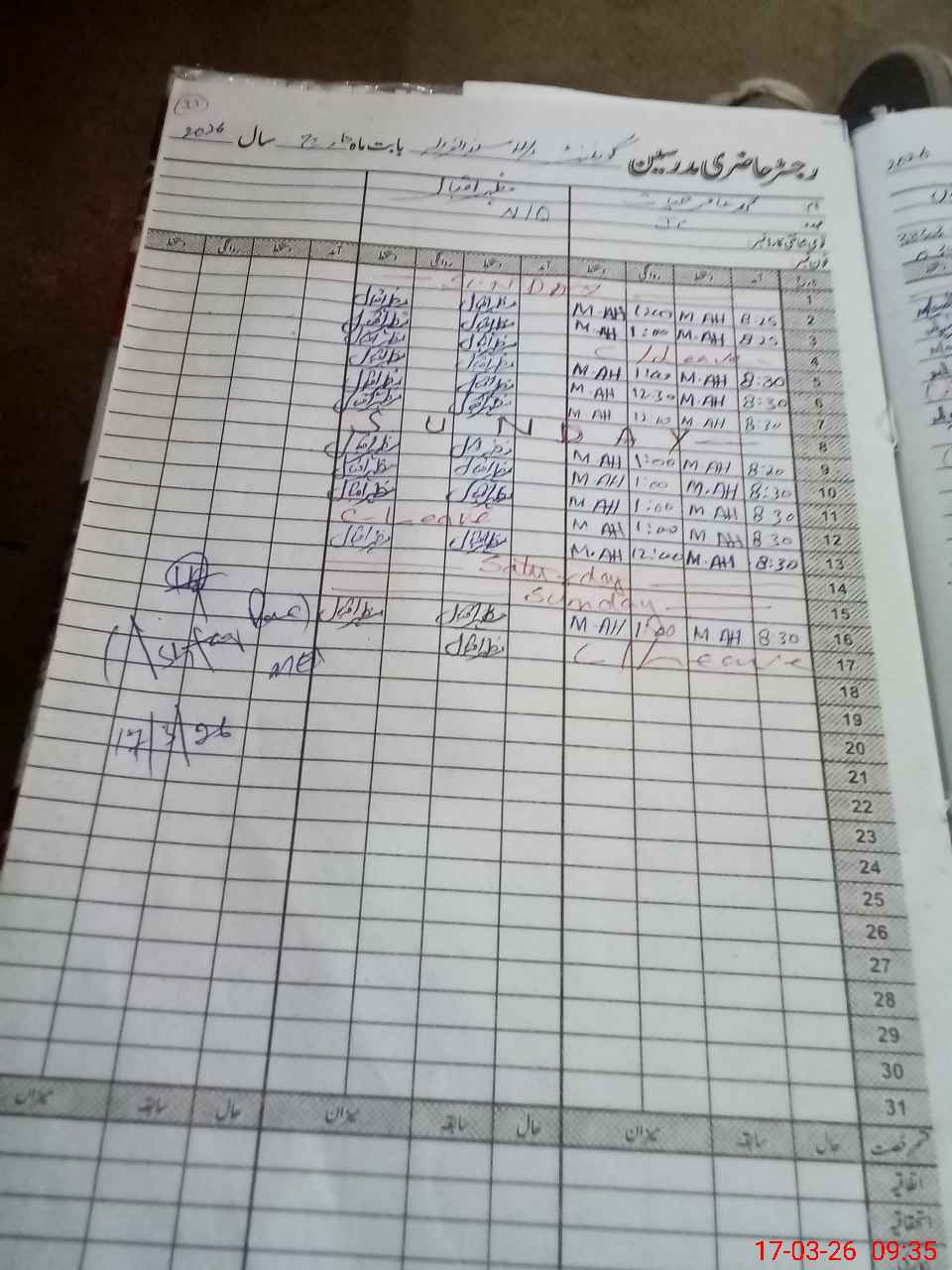 | CNIC | Full Name | Designation | R/C | Absence During Last Calender Month |