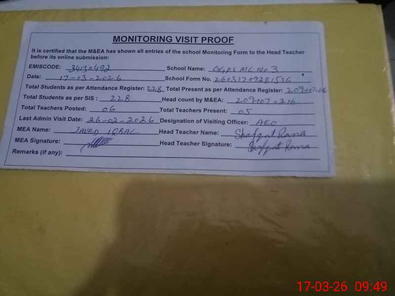 | EMIS Code: 34130492 | Name of School: GGPS MC NO.03 KAMOKE | |||