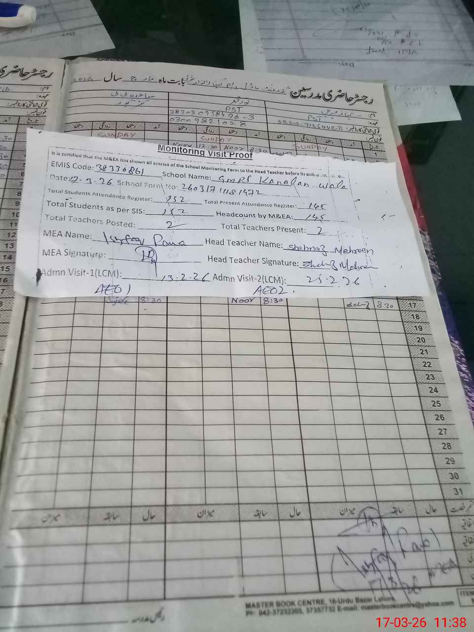 | EMIS Code: 38330861 | Name of School: GMPS KANALAN WALA | |||