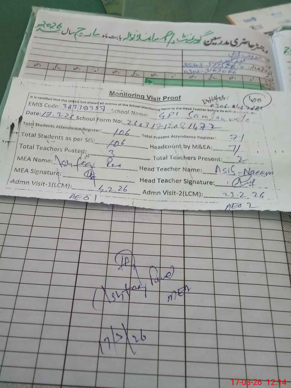 | EMIS Code: 38330357 | Name of School: GPS SAMLAN WALA | |||