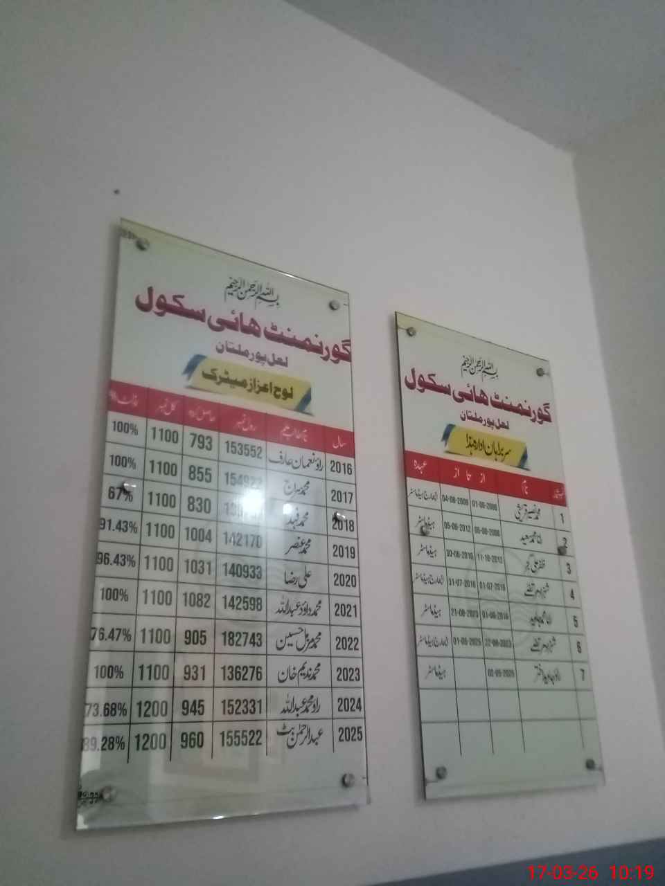 | District: MULTAN | Tehsil: MULTAN SADAR | Markaz: SECONDARY-WING | Level: High | |