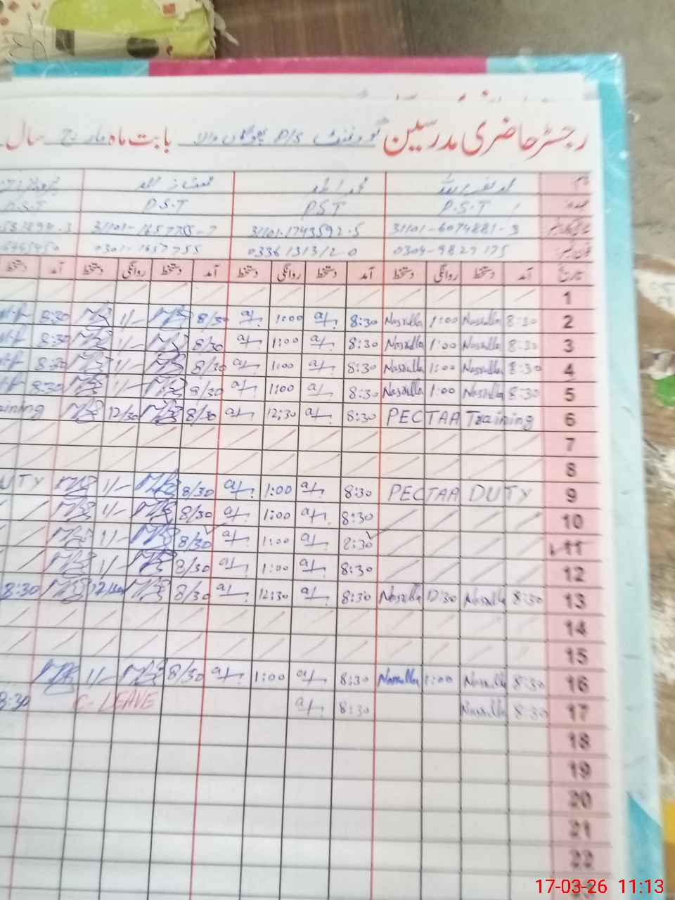 | Name: MNA**** Designation: (School Headmaster's/Headmistress's) PST Phone/Cell Number: 03**** |