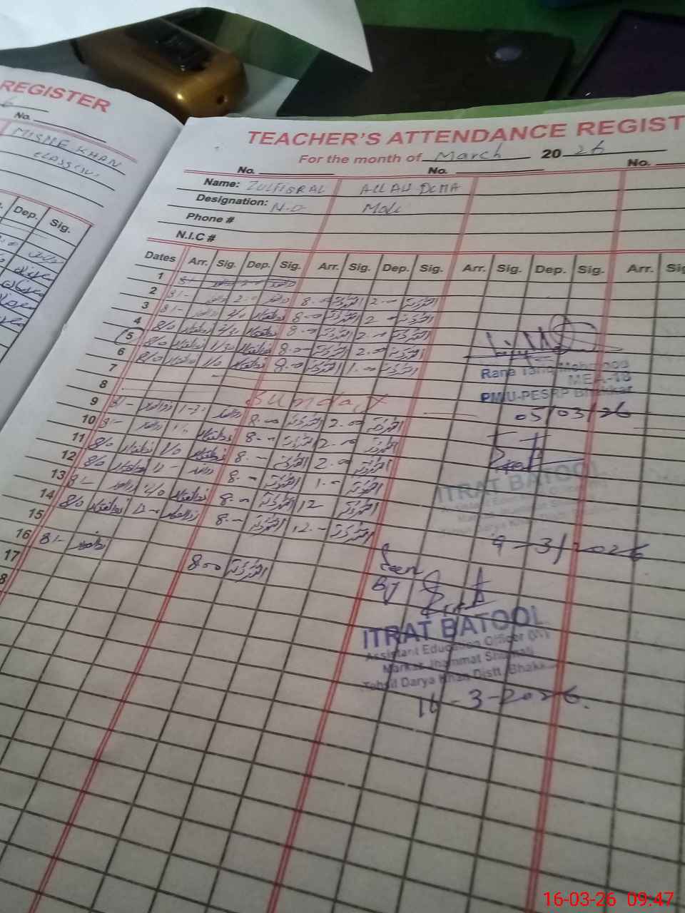| Name: ZA**** BA**** Designation: (School Headmaster's/Headmistress's) S.S.T.(Arts) Phone/Cell Number: 03**** |