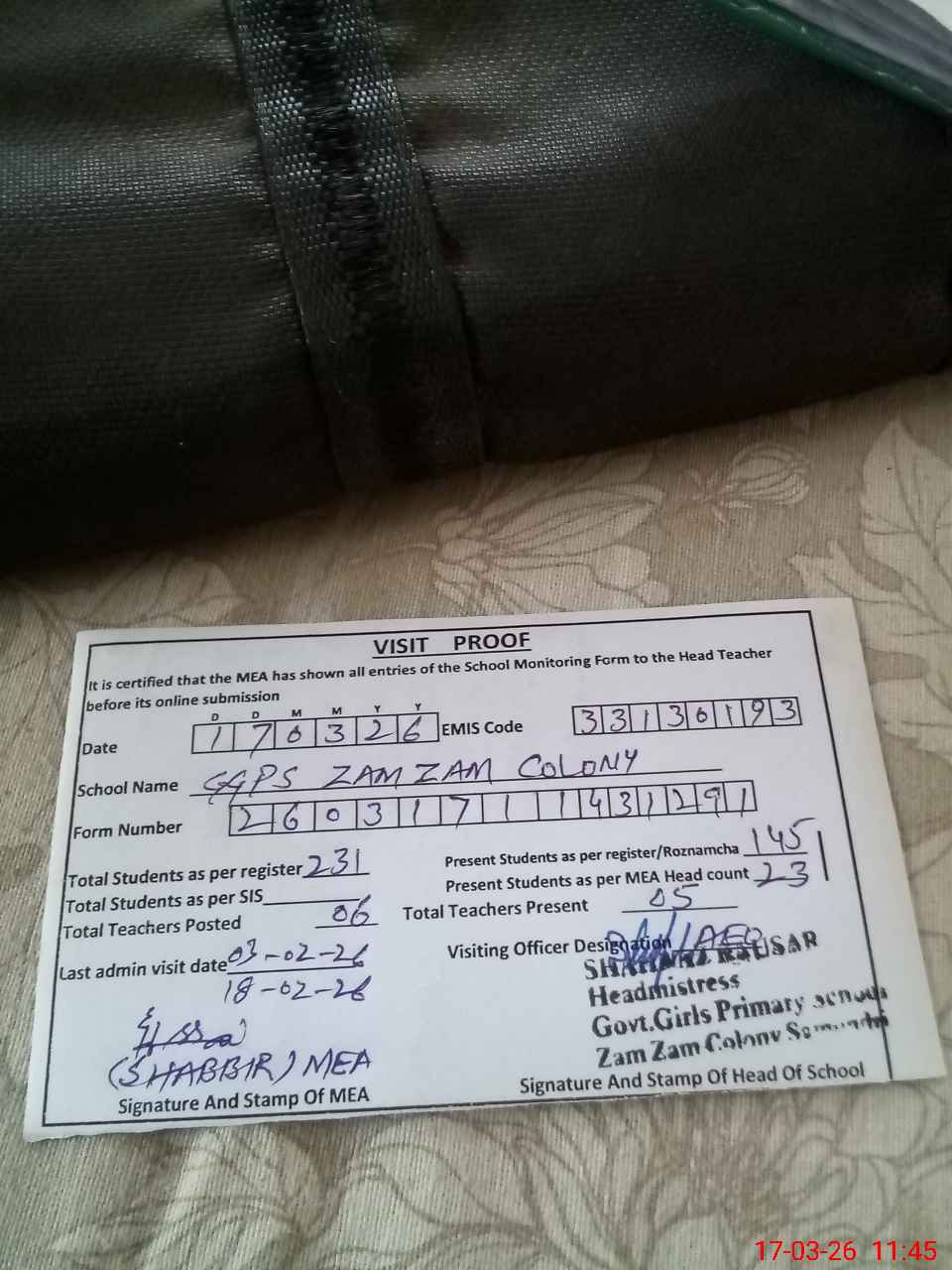 | EMIS Code: 33130193 | Name of School: GGPS ZAM ZAM COLONY SAMUNDRI | |||