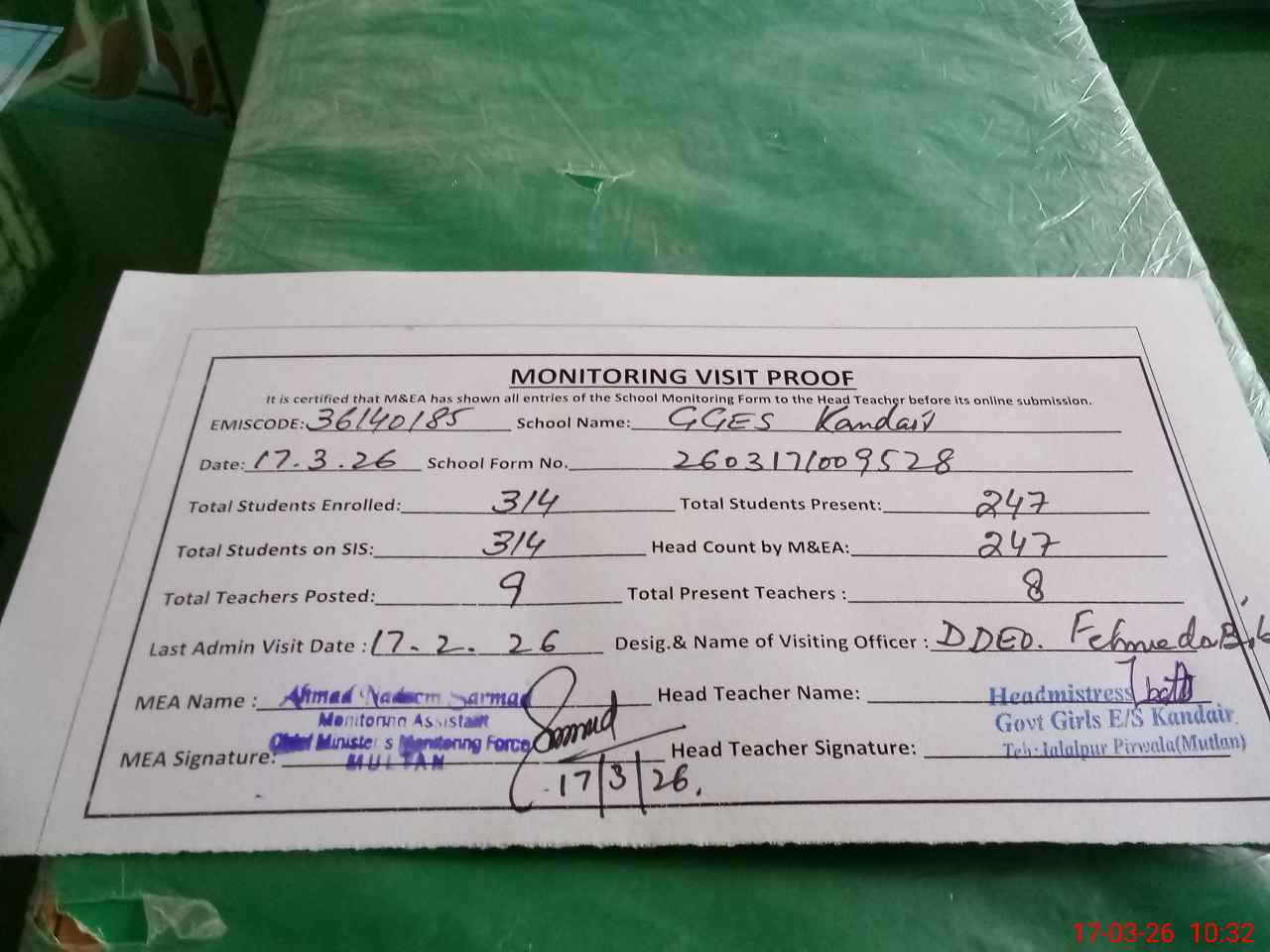 | EMIS Code: 36140185 | Name of School: GGES KANDAIR | |||
