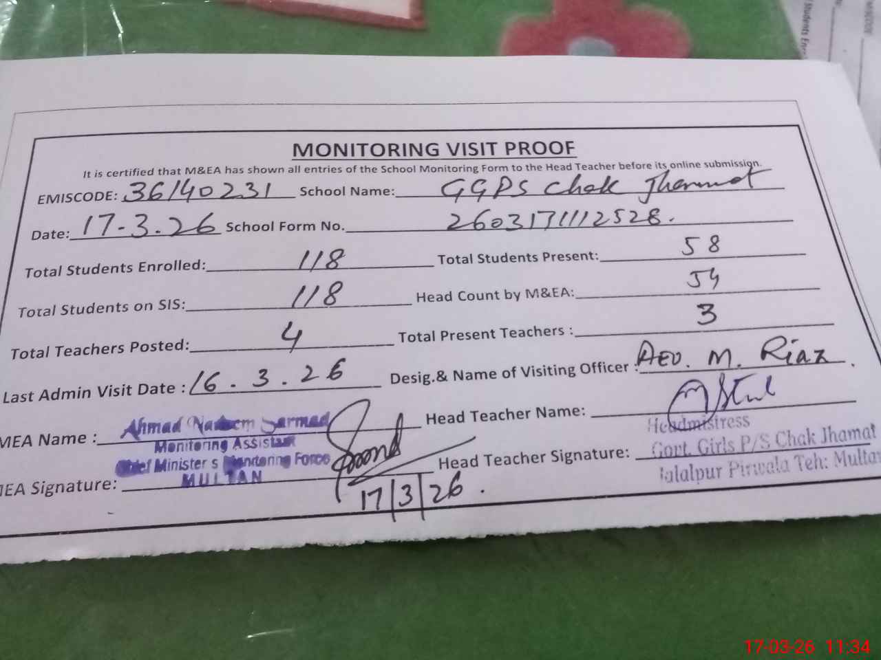 | EMIS Code: 36140231 | Name of School: GGPS CHAK JAHAMAT | |||