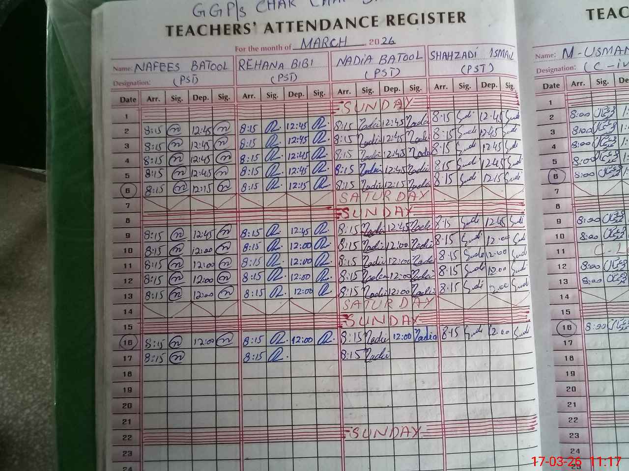 | 36**** | Sh**** Is**** | PST Science/Maths | Regular | 0 | 0 | 0 | 0 | 0 | 0 | 0 | 0 | 0 | Absent (Un-Authorized) |