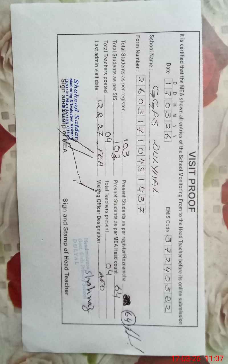 | EMIS Code: 37240382 | Name of School: GGPS DULYAAL | |||