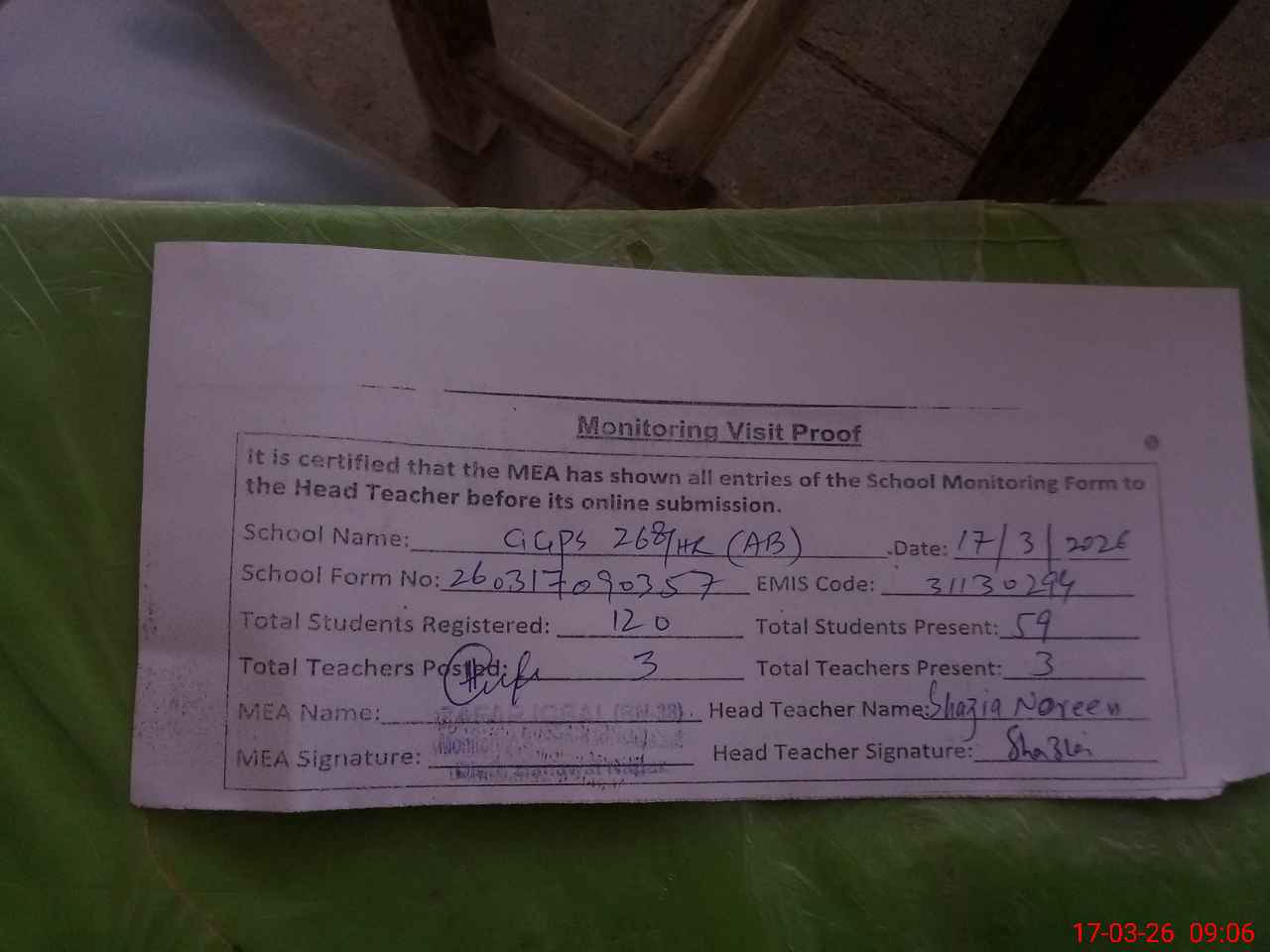 | EMIS Code: 31130294 | Name of School: GGPS CHAK NO 268 HR PUL BASTI | |||