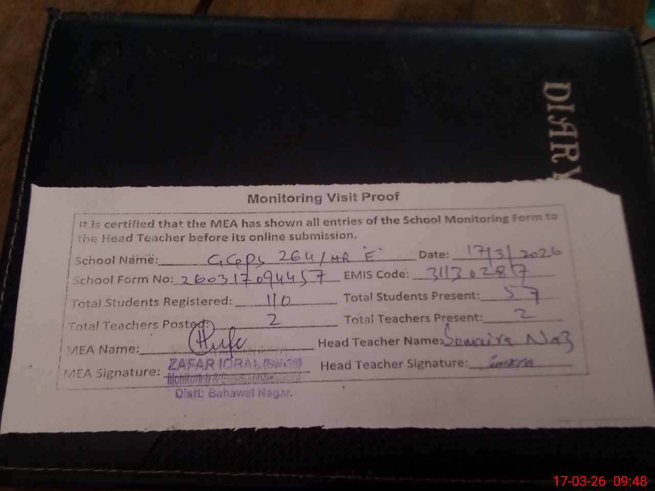 | EMIS Code: 31130287 | Name of School: GGPS CHAK NO. 264 HR W | |||
