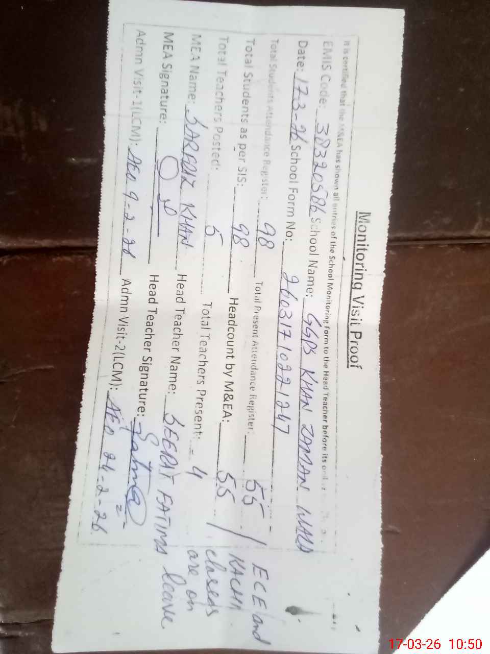| EMIS Code: 38320586 | Name of School: GGPS KHAN ZAMAN WALA | |||