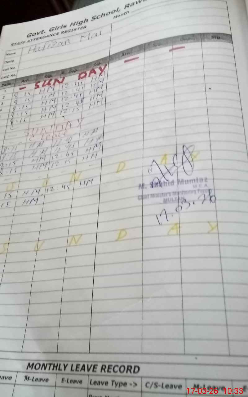 | Name: Ma**** Za**** Designation: (School Headmaster's/Headmistress's) HEADMISTRESS Phone/Cell Number: 03**** |