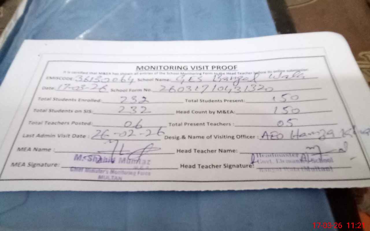 | EMIS Code: 36130064 | Name of School: GES BANGAL WALA P/O KOT ABBAS MELA RAM | |||