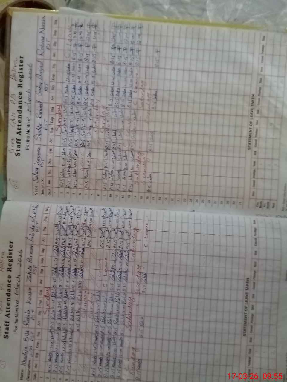 | Leave | Duty | Absent | Maternity | Medical | Ex- Pak |