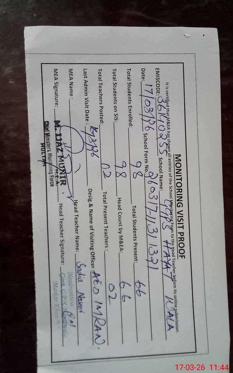 | EMIS Code: 36140255 | Name of School: GGPS HAYAT WALA | |||