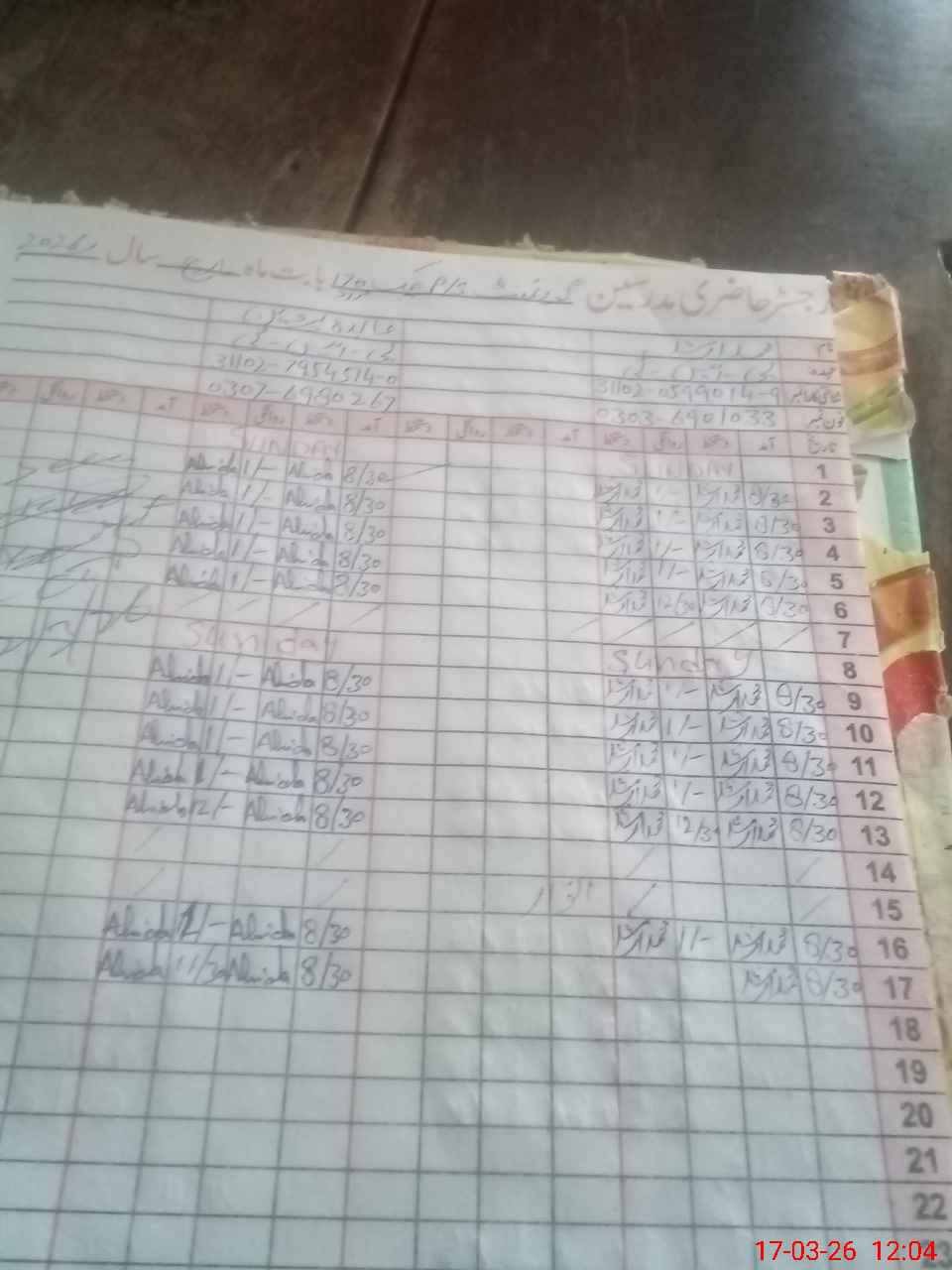 | CNIC | Full Name | Designation | R/C | Absence During Last Calender Month |