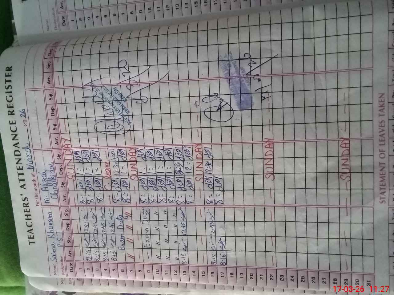 | Name: Ar**** Fa**** Designation: (School Headmaster's/Headmistress's) PST HEAD Phone/Cell Number: 03**** |