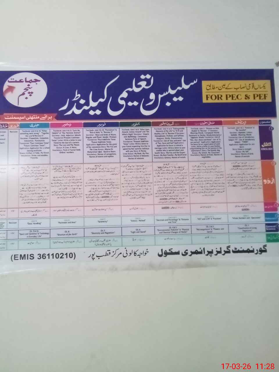 | EMIS Code: 36110210 | Name of School: GGPS KHAWAJA COLONY | |||