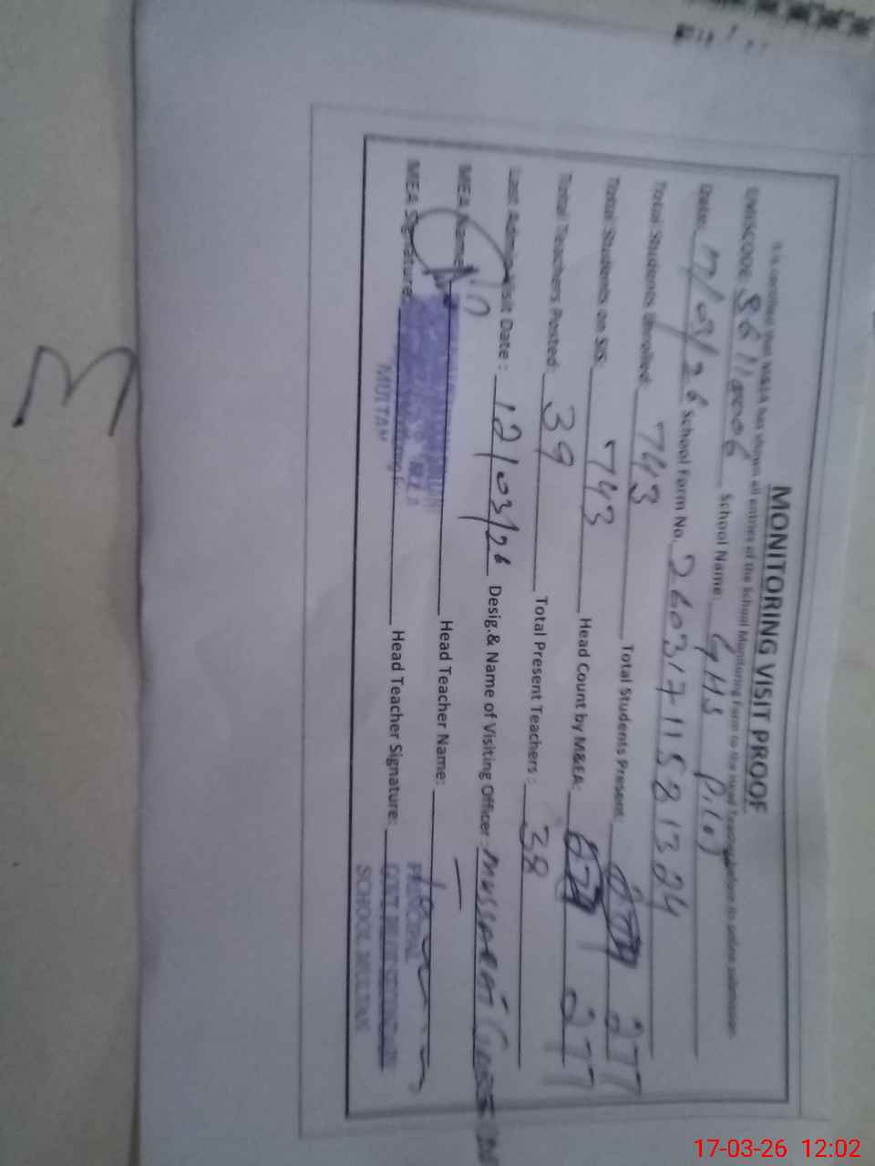 | Certified that this School was Inspected by the Undersigned MEA/DMO Today and the Information Stated Above is as Per Record. | |||||