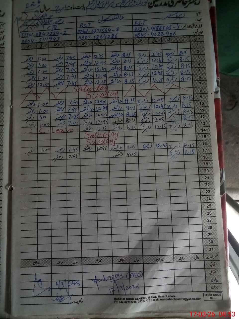 | CNIC | Full Name | Designation | R/C | Absence During Last Calender Month |