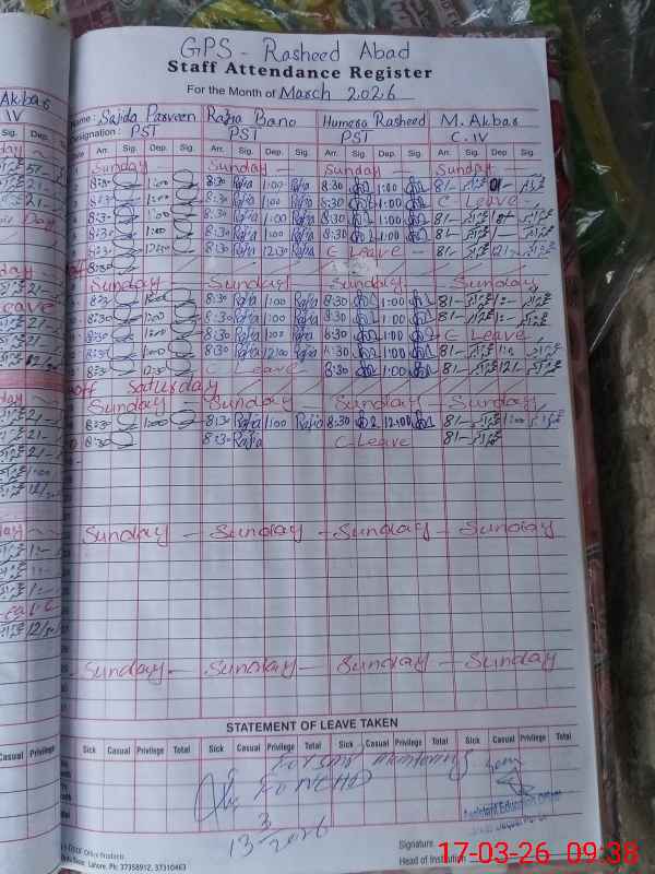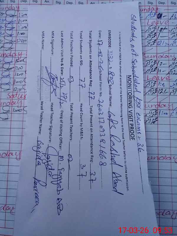| EMIS Code: 31320803 | Name of School: GPS RASHID ABAD | |||