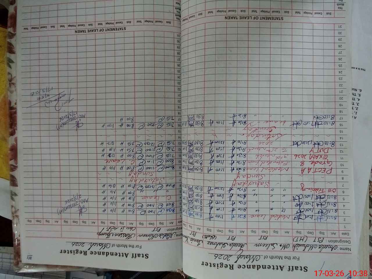 Leave Type | Remarks for today (Leave,Training, Exam,Absent,Late, Other duty) |