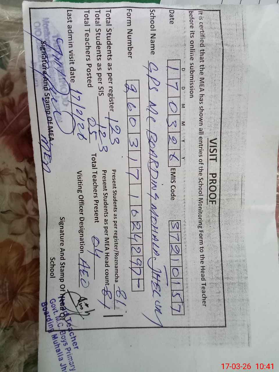 | EMIS Code: 37210157 | Name of School: GPS MC BOARDING MOHALLAH JHELUM | |||