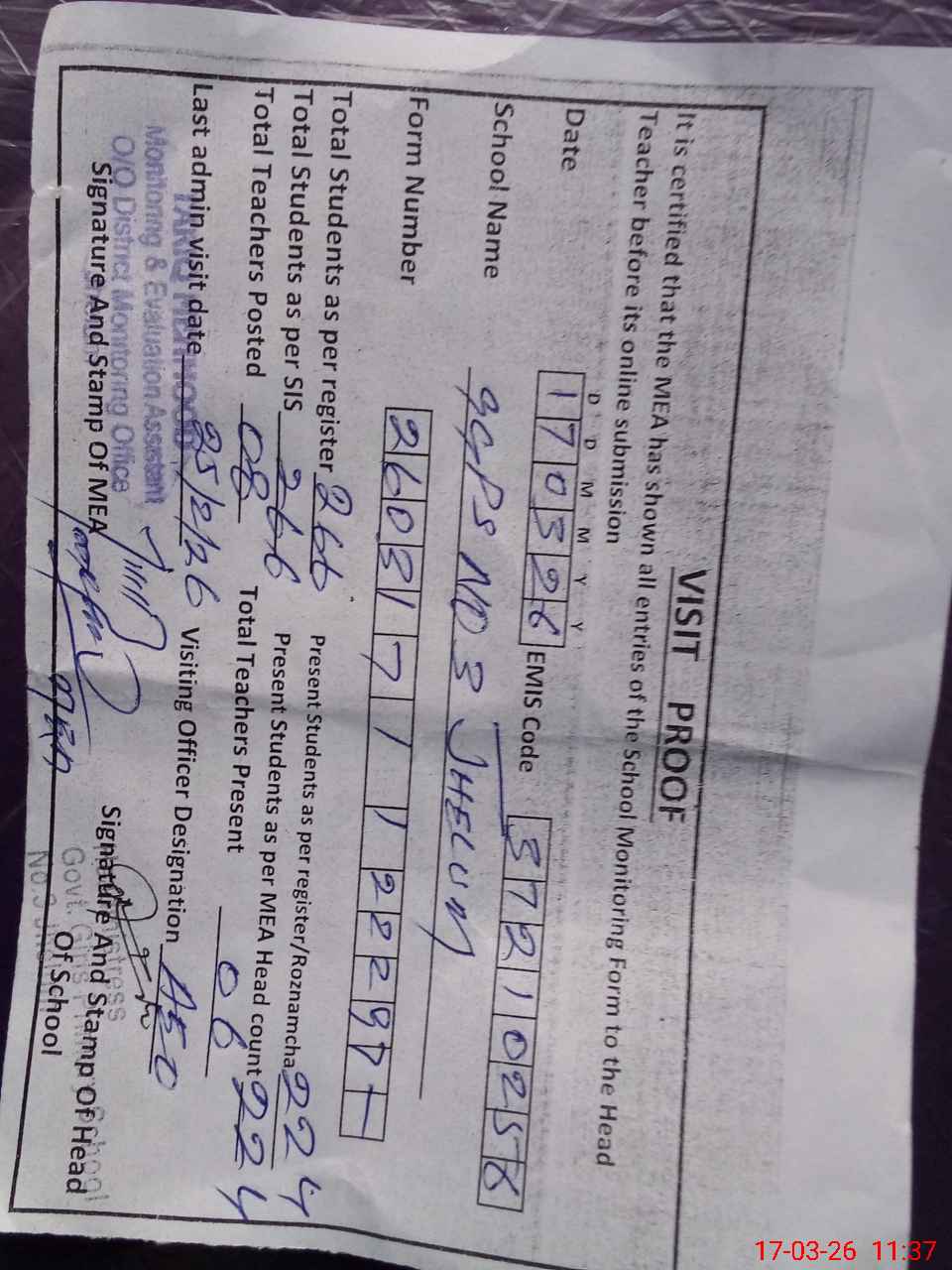 | EMIS Code: 37210256 | Name of School: GGPS NO. 3 JEHLUM | |||