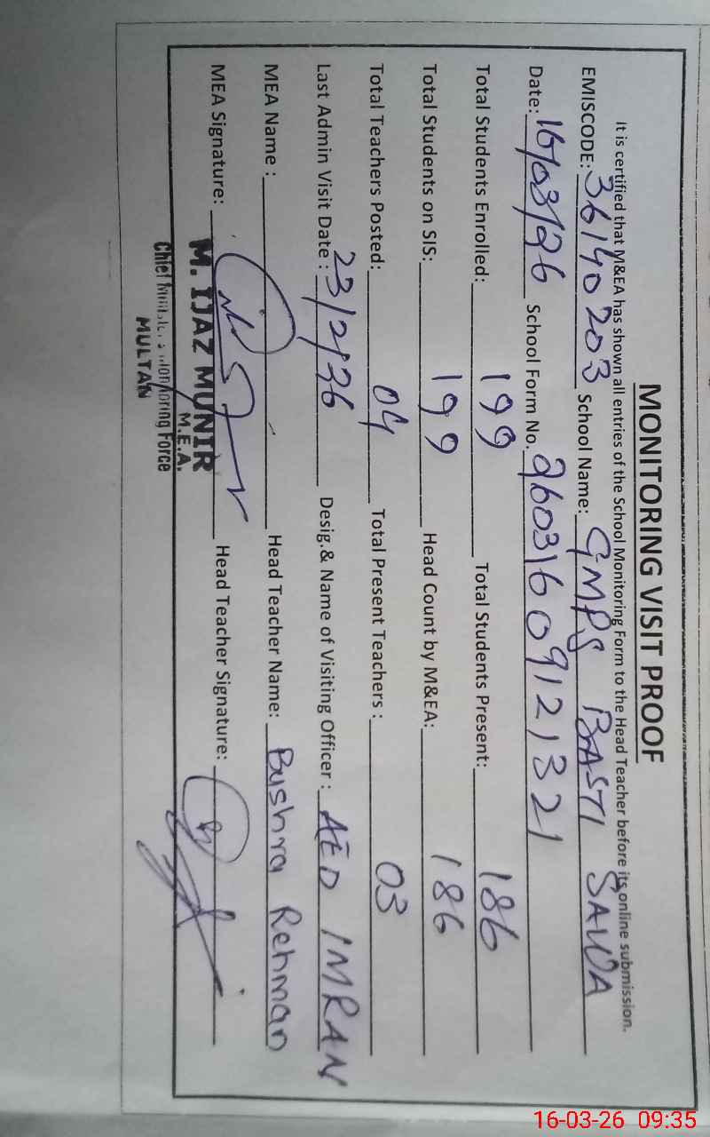 | EMIS Code: 36140203 | Name of School: GMPS BASTI SAWA JALALPUR PIRWALA | |||
